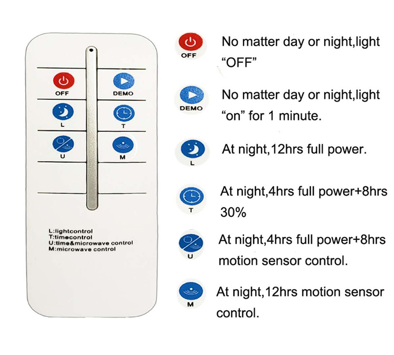 - Түнгі сенсор + Микротолқынды қозғалыс сенсоры + Қашықтан басқару пульті